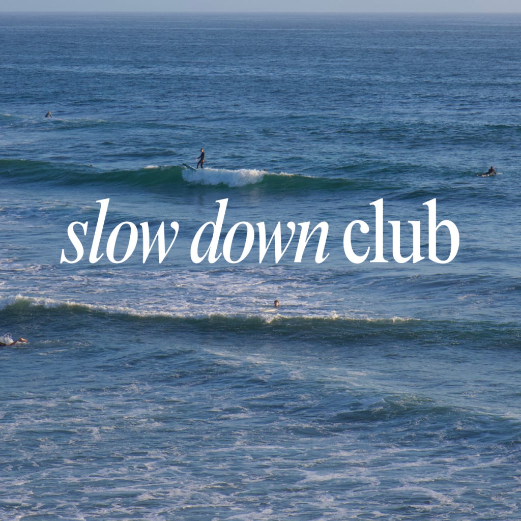 Slow Down Club is where I practice the discipline that every high achiever struggles with: the discipline of slowing down. Not doing less, but doing what actually matters with presence.